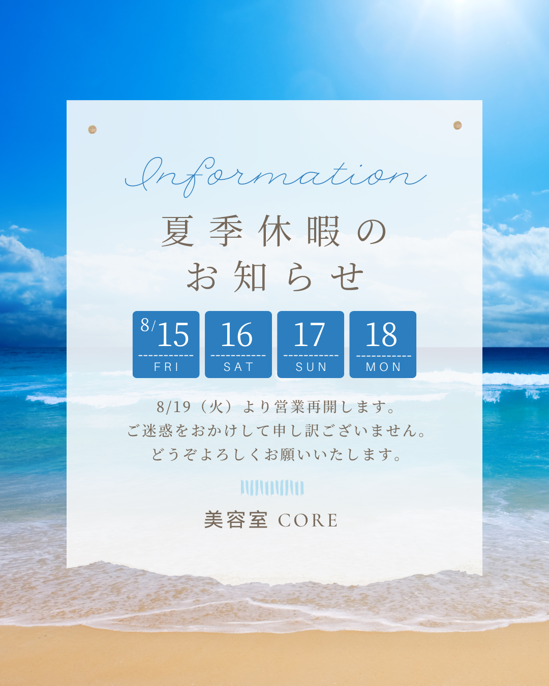 COREの夏季休業期間8月15日(金)~8月18日(月)について、下記の通りご案内申し上げます。
